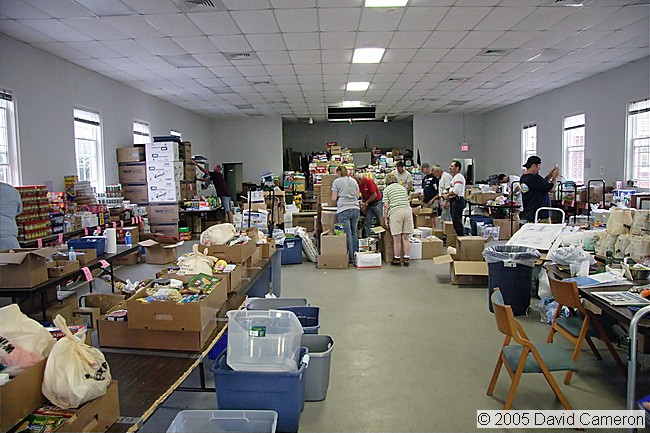 Food distribution point within the First Presbyterian Church in Biloxi, MS. The church is 1340 Beach Boulevard but survived the storm surge |