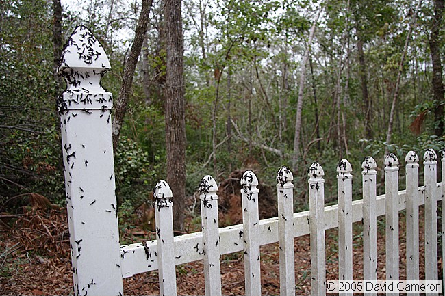 Love bugs were everywhere in Mississippi. This is a fence post in the city of Petal |