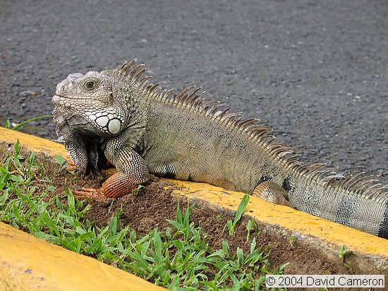 A large iguana checking out all the strange creatures visiting his home in the rain forest |