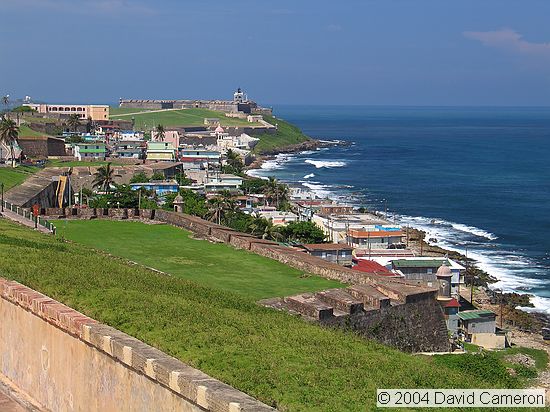 View West from San Cristóbal Castle. You can see El Morro, San Felipe Castle in the distance |