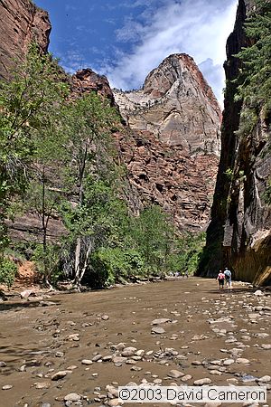 End of Riverside Walk. You must wade across the Virgin River to follow the trail into The Narrows |