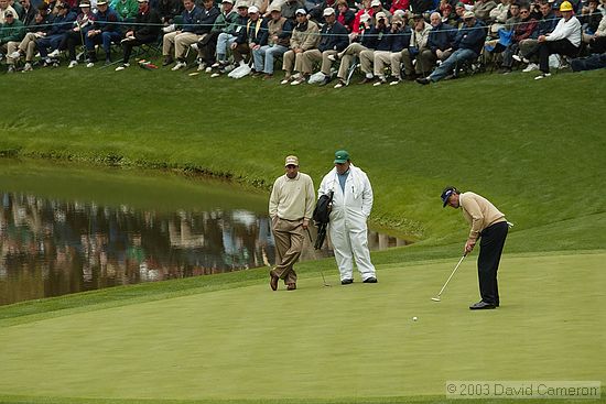 ![]() D4CE0903F Seve Ballesteros putts on the Par 3 9th green. Jose Maria Olazabal watches |