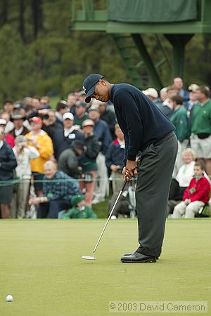 ![]() D4CE0839F Tiger Woods on the 18th green Winner of the 1997, 2001, & 2002 Masters |