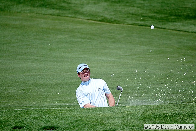 Player hitting out of the bunker on the 2nd green