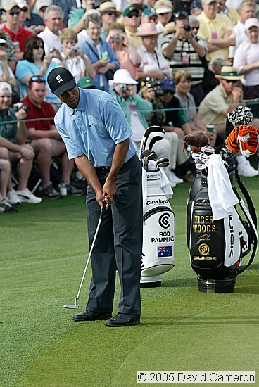 Tiger Woods putting on the 9th green