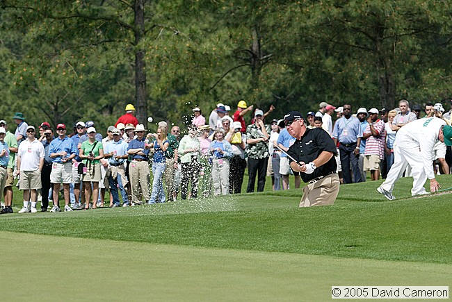 Mark O'Meara hits out of a bunker on the 17th hole