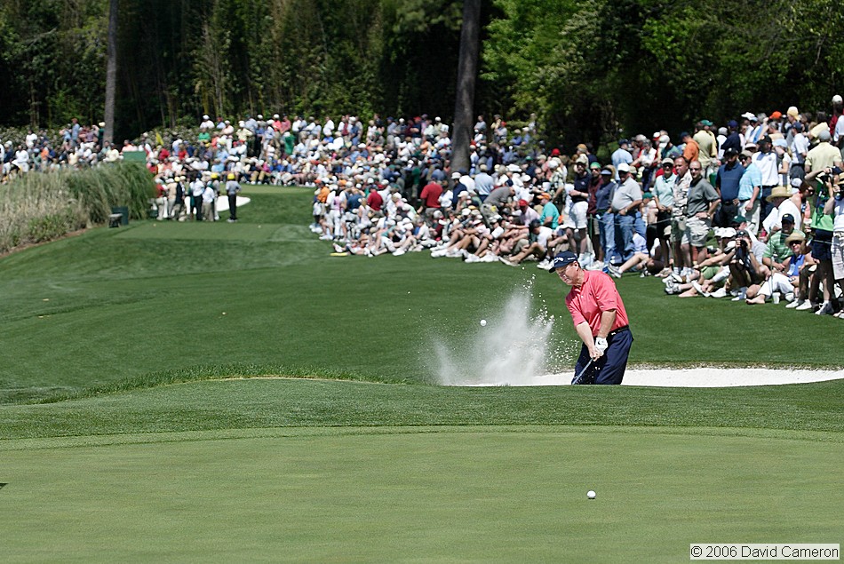 Tom Watson (1977 & 1981 Masters Champion) hits from the Par 3 5th bunker |