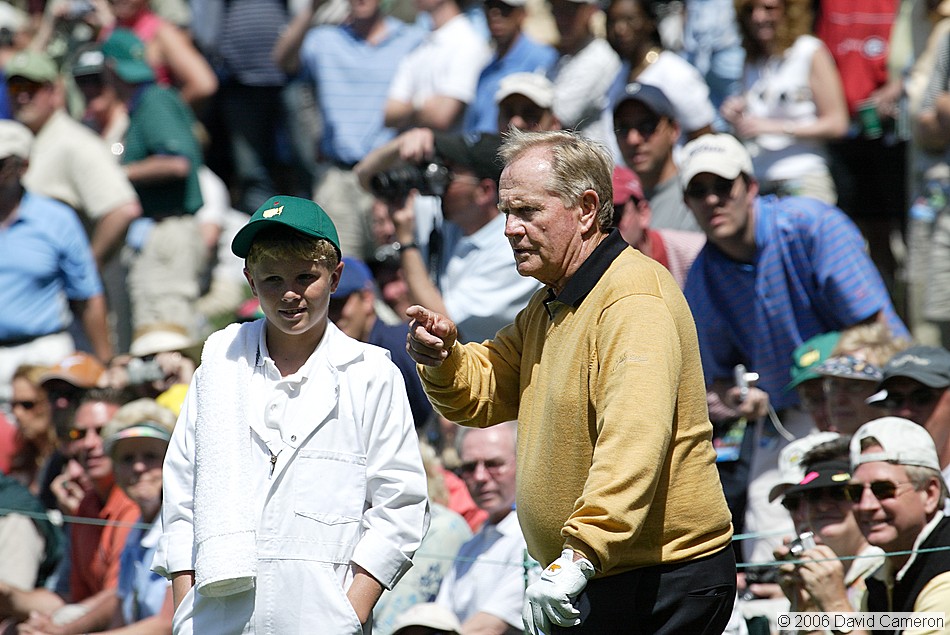 Jack Nicklaus (1963, 1965, 1966, 1972, 1975, & 1986 Masters Champion) talks with his grandson |