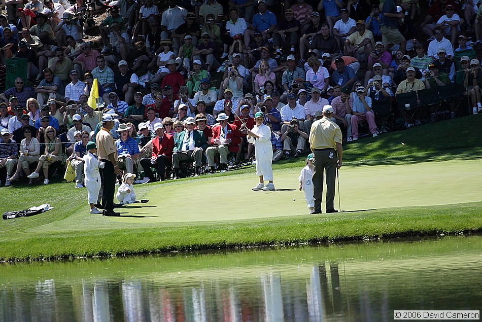 Chris DiMarco's caddy (son?) makes his putt on the Par 3 9th hole |