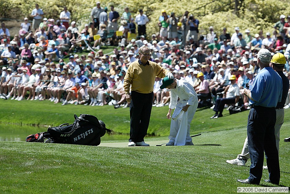 Jack Nicklaus (1963, 1965, 1966, 1972, 1975, & 1986 Masters Champion) jokes around with his grandson on the Par 3 8th green |
