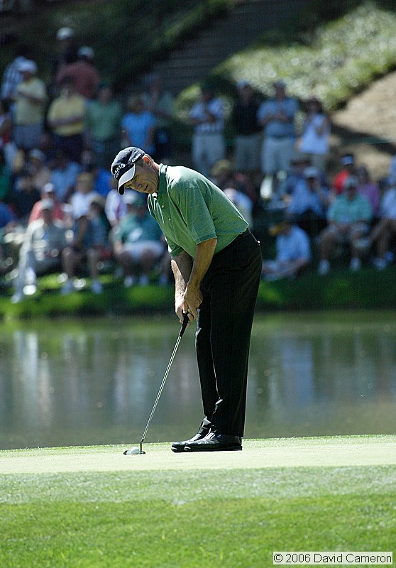 Jerry Pate putts on the Par 3 8th green