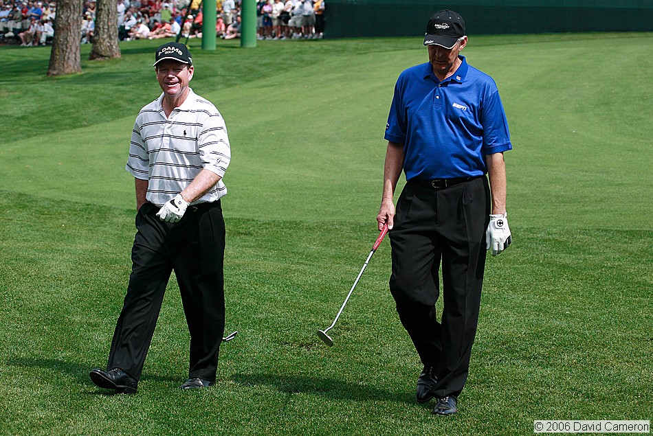 Tom Watson (1977 & 1981 Masters Champion) & Andy North approach the 16th tee |