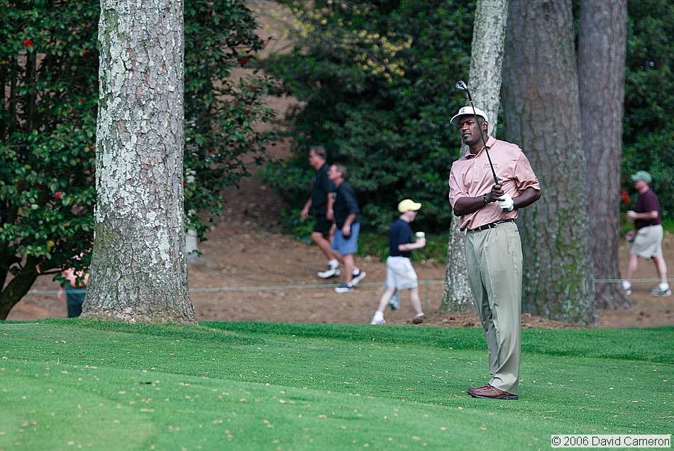 Vijay Singh (2000 Masters Champion) checks the result of his chip on #10 |