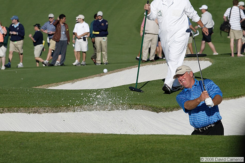 Mark O'Meara (1998 Masters Champion) hits from the 9th bunker