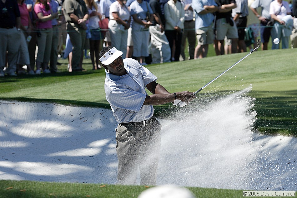 Vijay Singh (2000 Masters Champion) hits out of a bunker on #7
