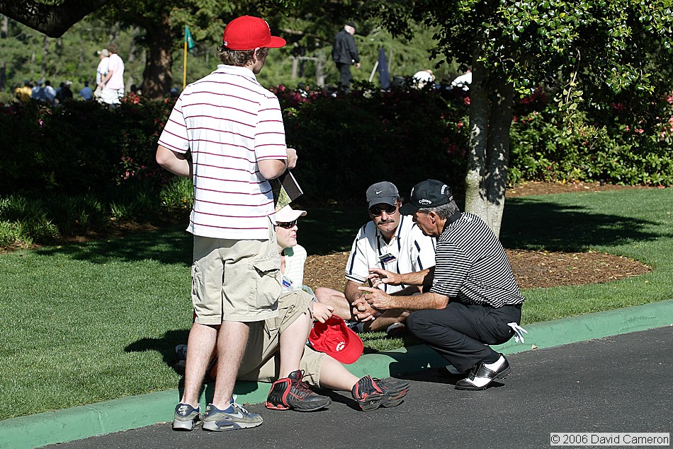 Gary Player (1961, 1974, & 1978 Masters Champion) takes time to talk to some patrons in front of the clubhouse |